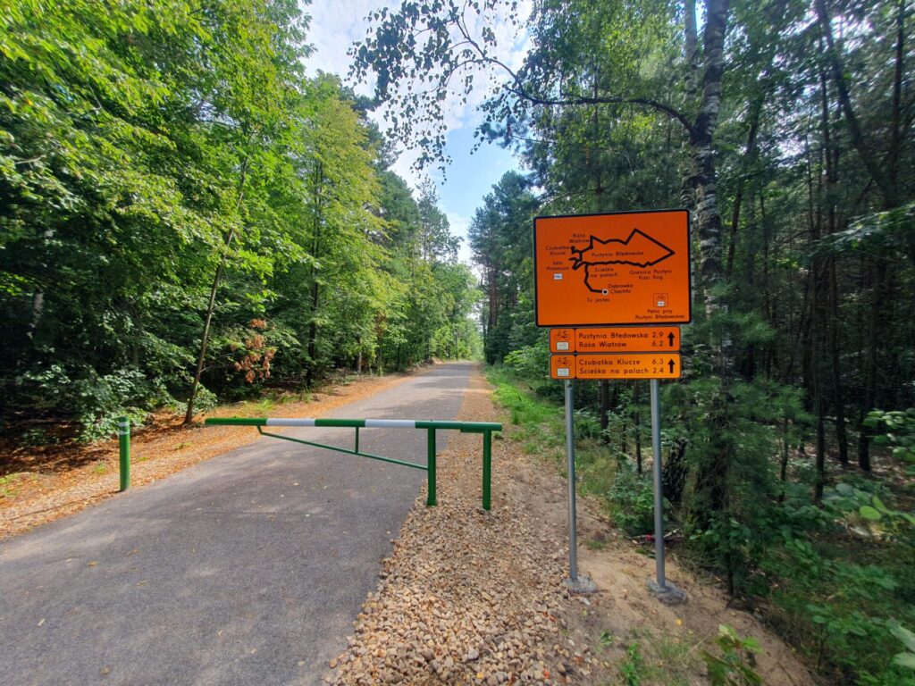 - Segment 1: Betonowa Arteria (7 km): To główny, najnowocześniejszy odcinek trasy. Gładka, betonowa ścieżka o szerokości 2.5 metra biegnie wzdłuż skraju pustyni aż do granicy województw. Ten fragment jest w pełni dostępny dla wszystkich typów rowerów, włączając w to rowery szosowe, a także dla wózków dziecięcych i inwalidzkich.